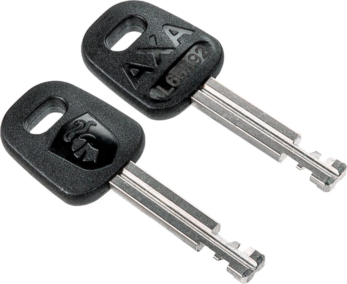 Het kettingslot wordt met 2 sleutels geleverd, maar het is mogelijk om extra sleutels bij te bestellen via de online sleutelservice van AXA. Het sleutelnummer is hiervoor noodzakelijk en dient bewaard te worden.
