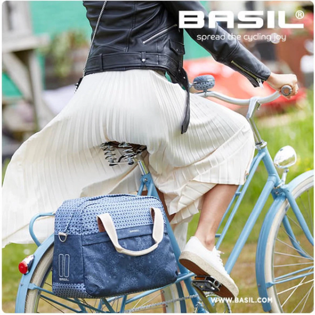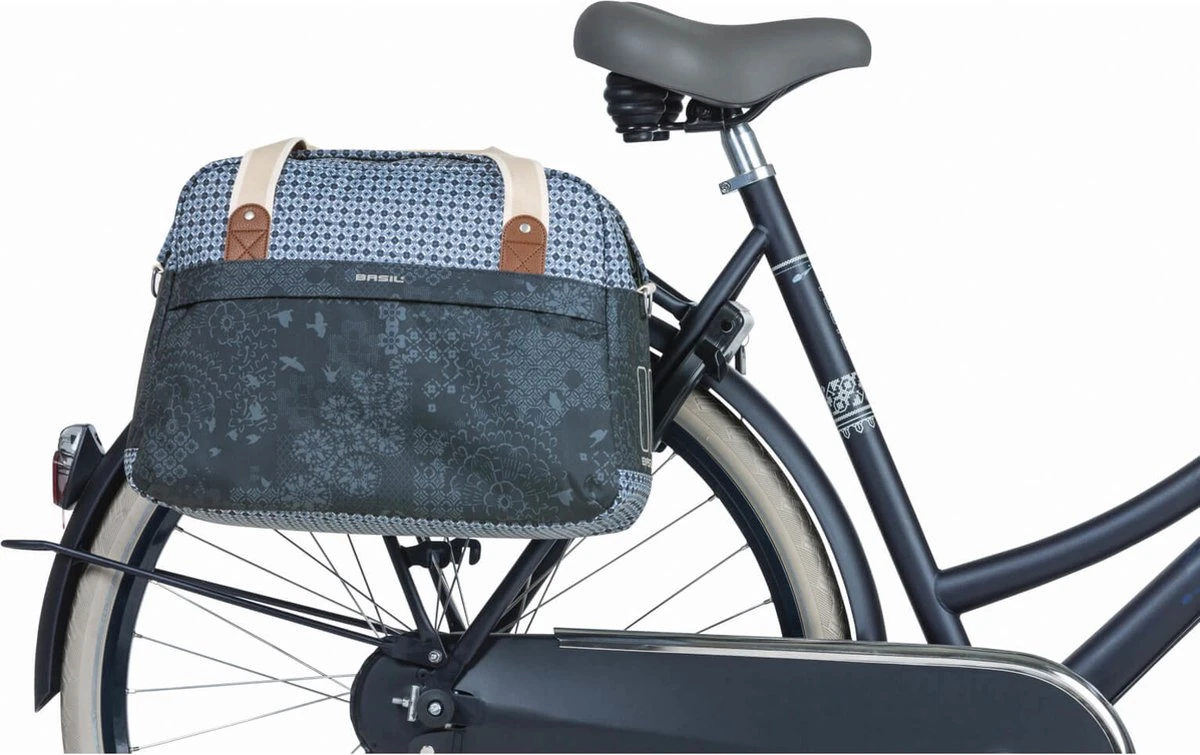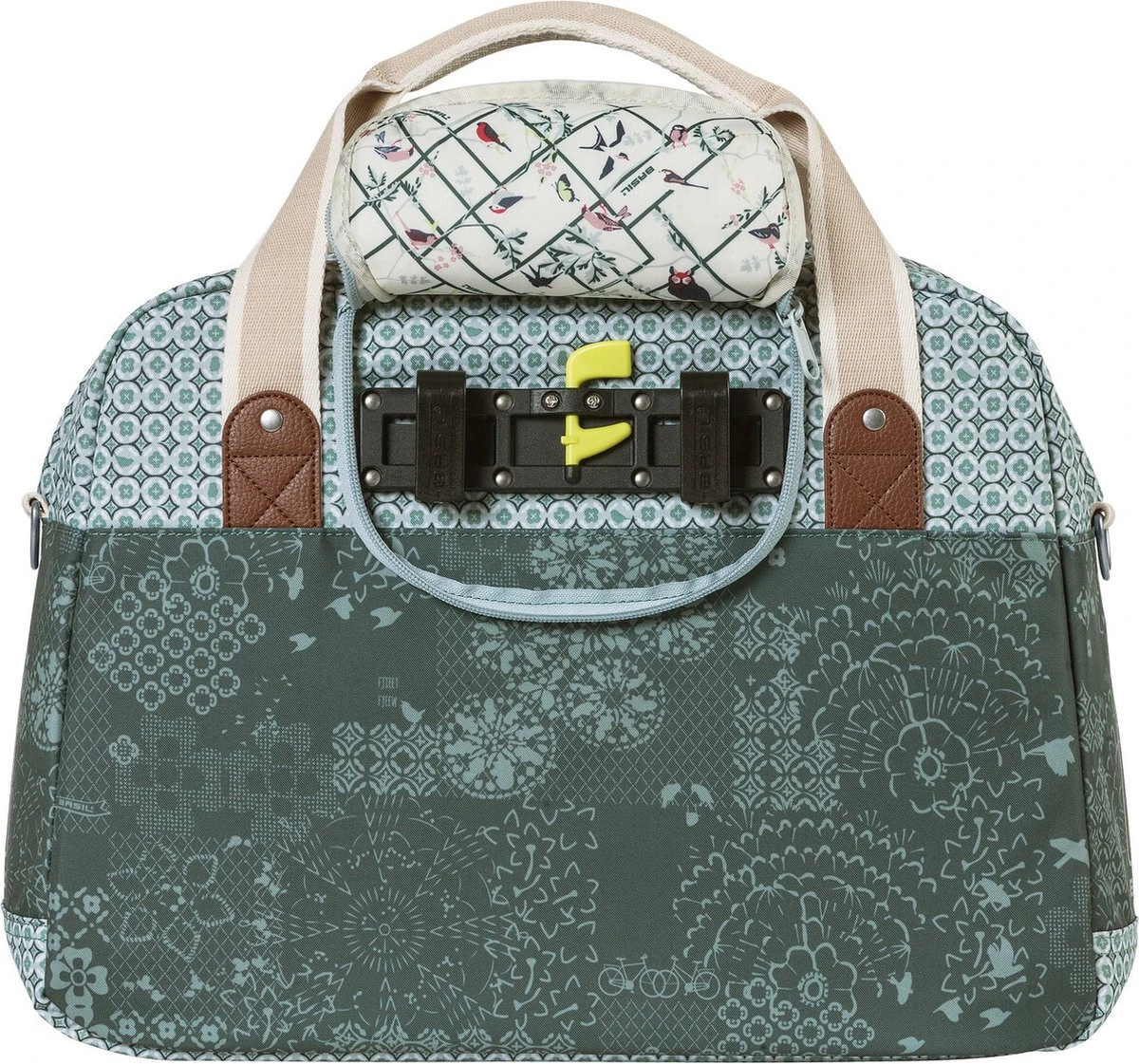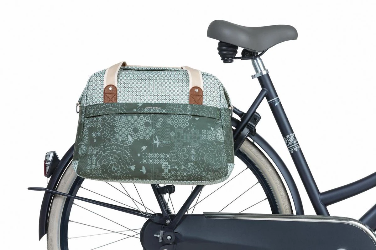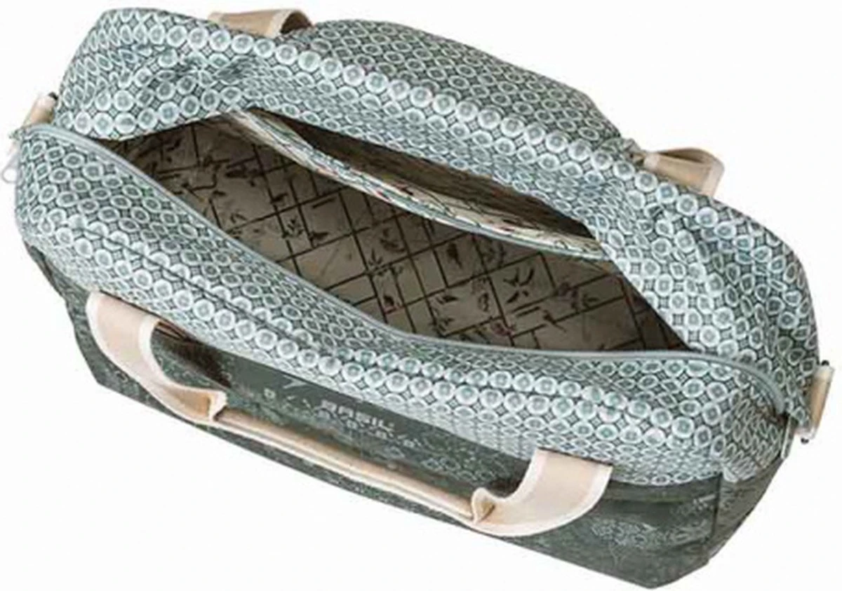 De Basil Bohè;me fietsschoudertas is een enkele groene fietstas die er stijlvol uitziet, maar ook nog eens erg makkelijk in gebruik is. De tas heeft een inhoud van 18 liter en de bohomien print zorgt voor een elegante uitstraling. Door het Hook-On System is de tas geschikt voor vele bagagedragers (ook e-bike) en kun je hem eenvoudig aan je bagagedrager haken. Dit systeem is mooi weggewerkt met behulp van een apart ritvakje. De tas beschikt over twee hengsels en een afneembaar schouderhengsel, waardoor je hem als schouder-, hand- en fietstas kan gebruiken. Een fietsrit naar de supermarkt of een lunchafspraak met die vriendin, deze fietstas maakt jouw (boho) look compleet en de fietsrit makkelijker. De fietstas is voorzien van een binnenzak, stevige binnenvoering, kunstlederen details en een ritssluiting. Door het waterafstotende polyester blijft de inhoud van de tas droog bij een kleine regenbui. De reflectiedetails op beide kanten zorgen ervoor dat je beter zichtbaar bent in het donker. Deze Basil Bohè;me Carry All is verkrijgbaar in meerdere kleuren waaronder rood en blauw. Ben jij fan van mixen en matchen? Neem dan een kijkje bij de bijpassende bohemian zadelhoezen en fietsbellen. Eigenschappen: De fietstas is geschikt voor diverse bagagedragers (ook e-bikes). De tas is gemakkelijk te bevestigen met behulp van het Hook-On System. De tas kan door het waterafstotende polyster tegen een regenbuitje, maar zal na een dag in de regen niet meer kurkdroog zijn. De fietstas is multifunctioneel en kan als fiets-, schouder- en handtas gebruikt worden. De fietstas is veiliger door reflectiestukken en groene klipje, zodat je de tas niet gemakkelijk verliest.