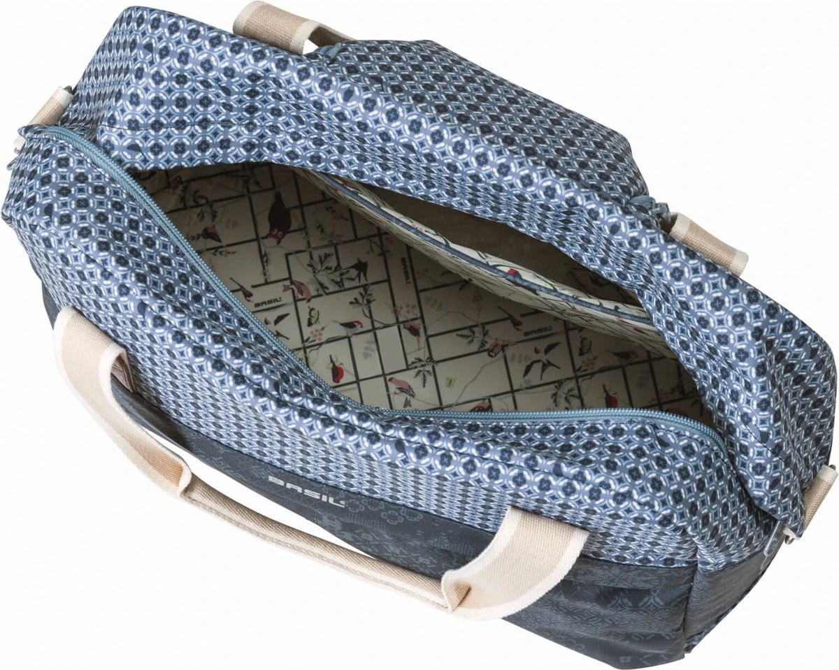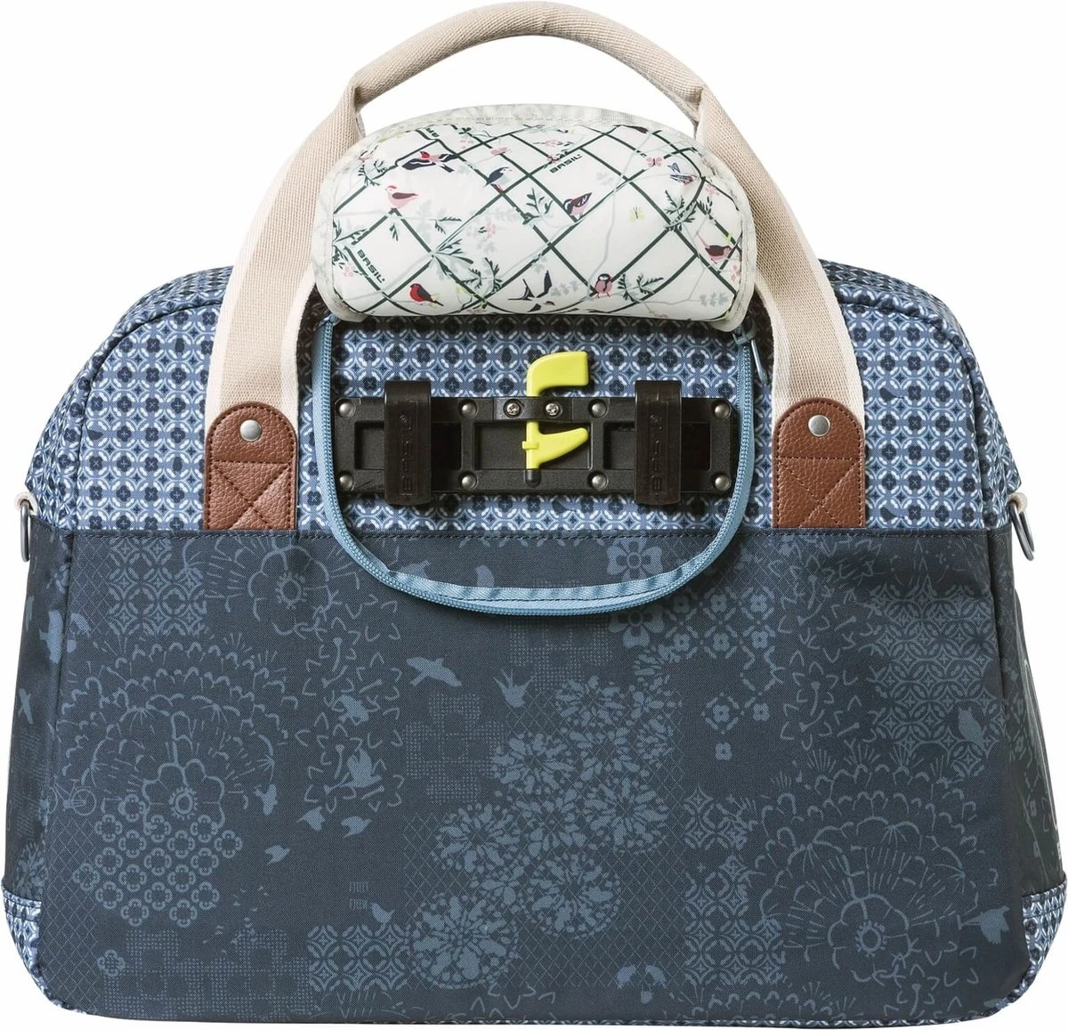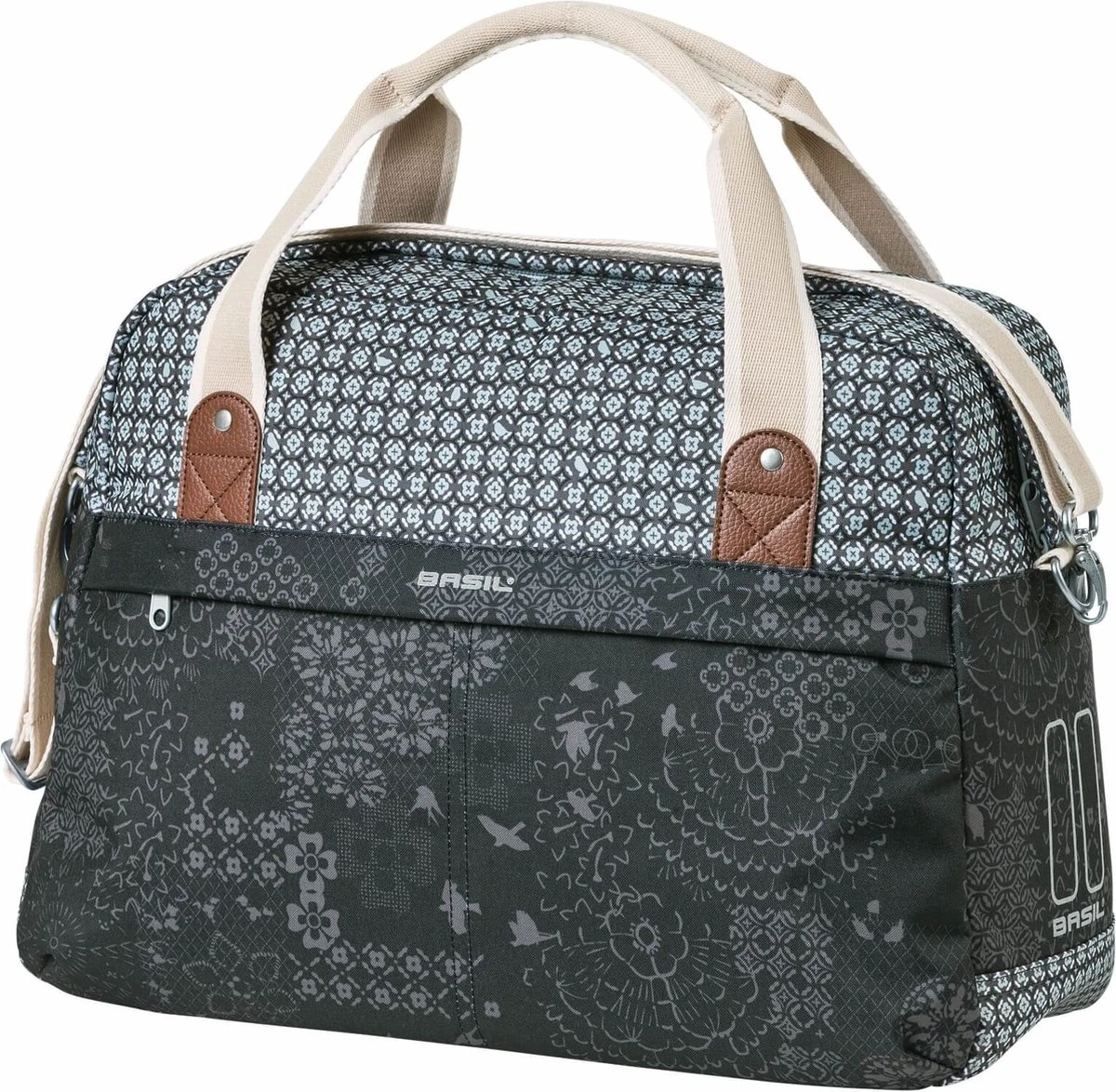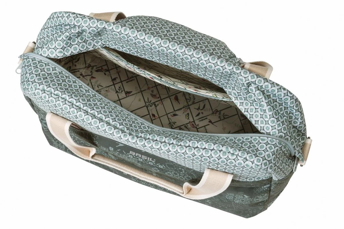 De Basil Bohè;me fietsschoudertas is een enkele groene fietstas die er stijlvol uitziet, maar ook nog eens erg makkelijk in gebruik is. De tas heeft een inhoud van 18 liter en de bohomien print zorgt voor een elegante uitstraling. Door het Hook-On System is de tas geschikt voor vele bagagedragers (ook e-bike) en kun je hem eenvoudig aan je bagagedrager haken. Dit systeem is mooi weggewerkt met behulp van een apart ritvakje. De tas beschikt over twee hengsels en een afneembaar schouderhengsel, waardoor je hem als schouder-, hand- en fietstas kan gebruiken. Een fietsrit naar de supermarkt of een lunchafspraak met die vriendin, deze fietstas maakt jouw (boho) look compleet en de fietsrit makkelijker. De fietstas is voorzien van een binnenzak, stevige binnenvoering, kunstlederen details en een ritssluiting. Door het waterafstotende polyester blijft de inhoud van de tas droog bij een kleine regenbui. De reflectiedetails op beide kanten zorgen ervoor dat je beter zichtbaar bent in het donker. Deze Basil Bohè;me Carry All is verkrijgbaar in meerdere kleuren waaronder rood en blauw. Ben jij fan van mixen en matchen? Neem dan een kijkje bij de bijpassende bohemian zadelhoezen en fietsbellen. Eigenschappen: De fietstas is geschikt voor diverse bagagedragers (ook e-bikes). De tas is gemakkelijk te bevestigen met behulp van het Hook-On System. De tas kan door het waterafstotende polyster tegen een regenbuitje, maar zal na een dag in de regen niet meer kurkdroog zijn. De fietstas is multifunctioneel en kan als fiets-, schouder- en handtas gebruikt worden. De fietstas is veiliger door reflectiestukken en groene klipje, zodat je de tas niet gemakkelijk verliest.