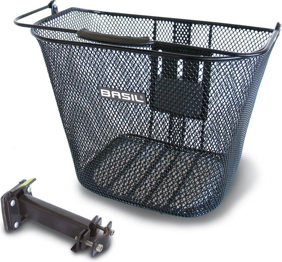 De Basil Bremen BE + BasEasy Stem Holder is een complete set die bestaat uit een ovalen stalen fietsmand in de kleur zwart en een handige houder. Deze houder is geschikt voor stuurpennen met een diameter van 22-25,4 millimeter. De afneembare fietsmand is verder licht in gewicht en neem je daarom probleemloos overal mee naartoe. Dit is onder meer handig bij het doen van een boodschap. De mand neem je comfortabel mee dankzij het hengsel. De Basil Bremen BE inclusief houder monteer je eenvoudig aan het stuur van een dames- of herenfiets.