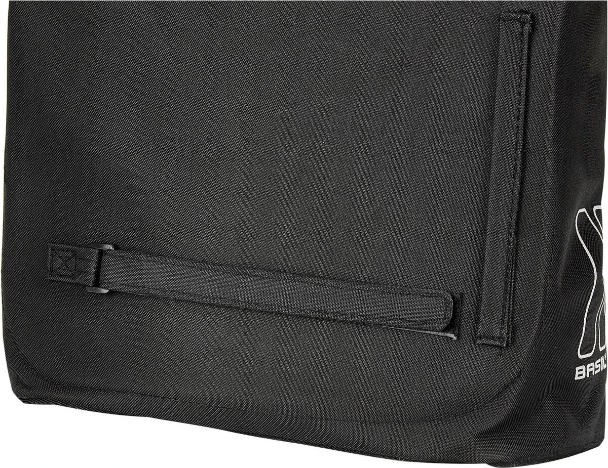 De Basil City dubbele fietstas past bij het uptempo van de city: werk, vrienden, uitgaan, naar de markt of het doen van boodschappen. De fietstas is compact, niet te groot maar toch ruim genoeg met een inhoud van 28 liter. Heb je net iets meer spullen bij je, dan vergroot je inhoud naar 32 liter. De vouwsluiting met klittenband kun je namelijk in hoogte instellen. Ook voorkomt de vouwsluiting inregenen. De tas in de kleur zwart is verder gemaakt van waterafstotend polyester. Aan veiligheid is ook gedacht, de tas is namelijk voorzien van reflectie op alle zijden en een bevestigingsmogelijkheid voor LED-verlichting. Heb je veel en zwaardere spullen in je tas? Dan kun je de tas combineren met de Basil Afstandhouder (apart verkrijgbaar). Deze houder voorkomt dat de tas in de spaken van je fiets komt. Je bevestigt de Basil City dubbele fietstas eenvoudig op je bagagedrager met het Universal Bridge systeem. Dankzij het Universal Bridge systeem kun je kiezen uit hoe je de tas wilt bevestigen. Het bevestigen kan met de voorgemonteerde riempjes. Of in combinatie met het Basil DBS systeem (afneembare bagagedragerplaten) of een adapterplaat zoals MIK. Beide systemen dien je apart aan te schaffen. Eigenschappen: Compacte en toch ruime dubbele fietstas met een inhoud van 28-32 liter. Met het Universal Bridge systeem bevestig je de fietstas gemakkelijk op je bagagedrager. Alle zijden van de tas zijn voorzien van reflectie. Dat maakt je beter zichtbaar.