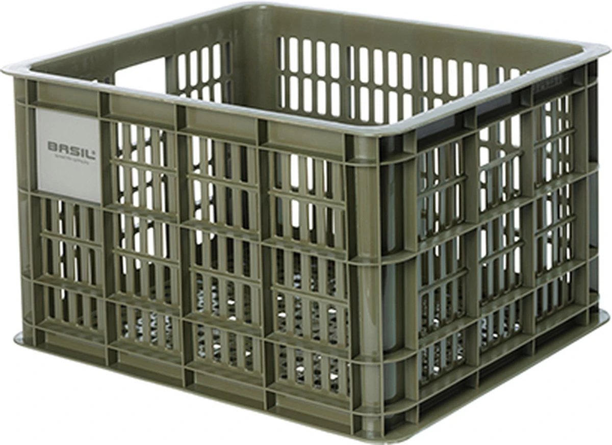 De Basil fietskrat in de maat M is een groene fietskrat voor op een dames- of herenfiets. De fietskrat is gemaakt van duurzaam materiaal en heeft een inhoud van 29,5 liter.