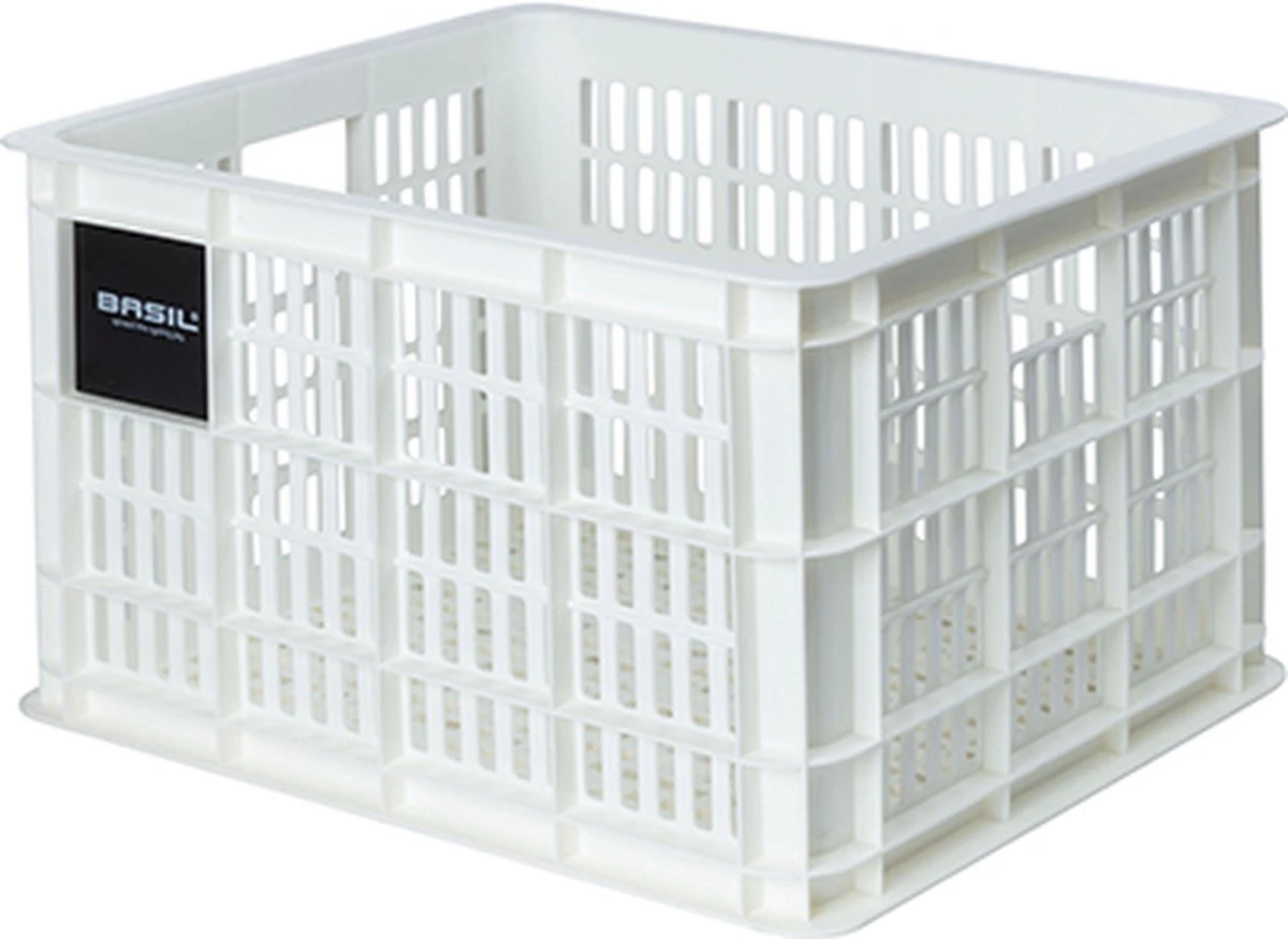 De Basil fietskrat in de maat M is een witte fietskrat voor op een dames- of herenfiets. De fietskrat is gemaakt van duurzaam materiaal en heeft een inhoud van 29,5 liter.