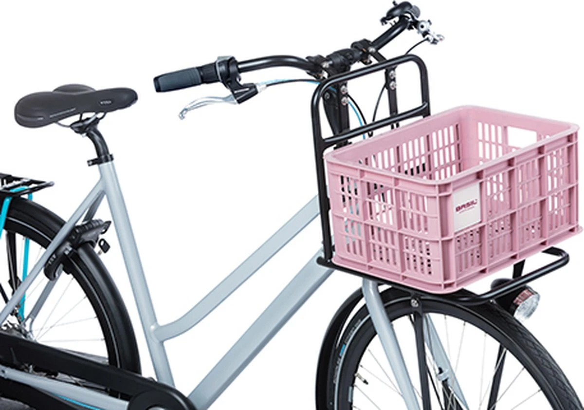 De krat kun je op meerdere manieren bevestigen. Voor een vaste montage maak je gebruik van de Basil Crate mounting set. Wil je de krat meenemen, omdat je bijvoorbeeld boodschappen bij je hebt of omdat je krat anders gejat wordt? Kies dan voor bevestiging met een adapterplaat zoals het MIK systeem. MIK = klik & GO! Het bevestigingssysteem koop je apart.
