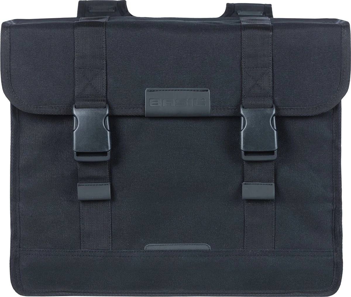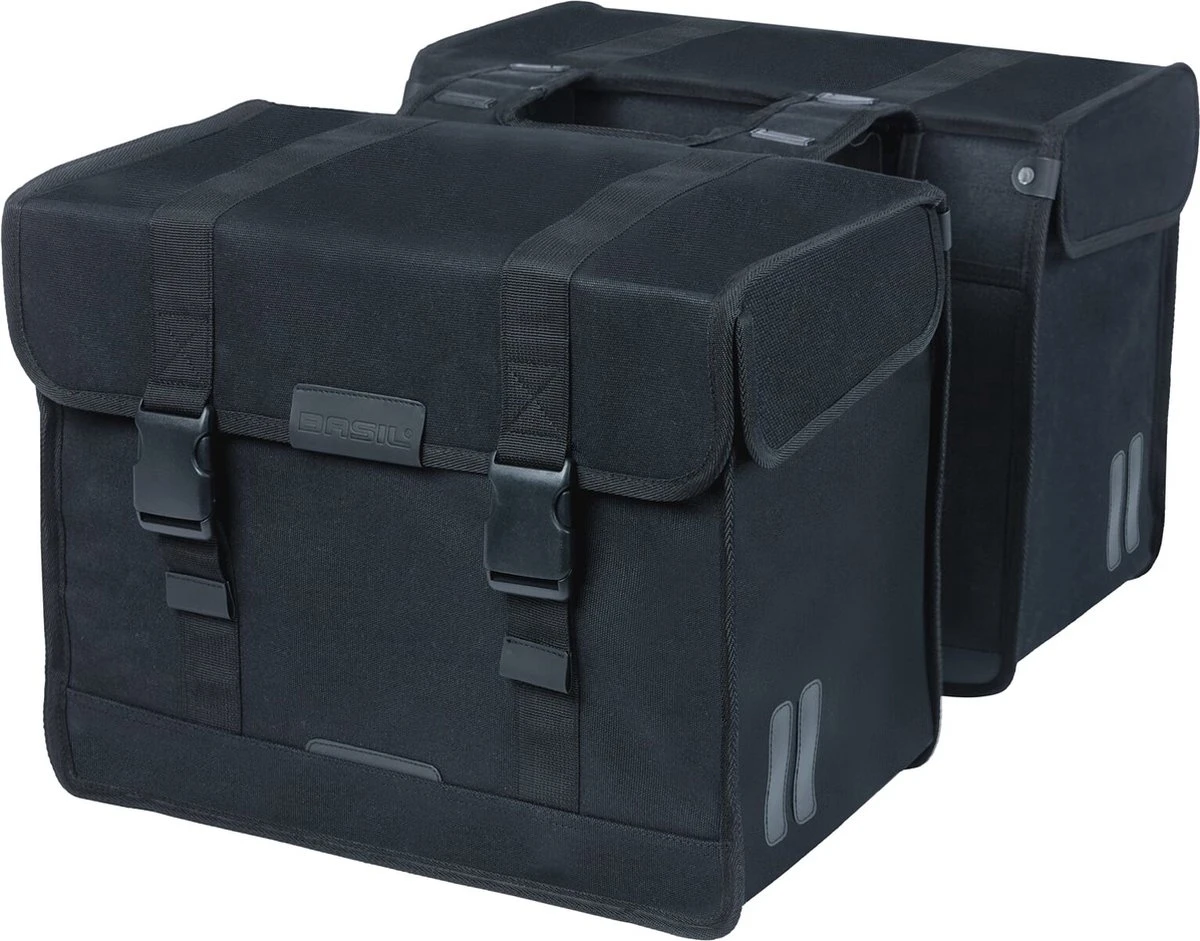 De Basil Kavan Eco Classic is een ruime dubbele fietstas in het zwart. De duurzame fietstassen passen goed achterop een dames- of herenfiets.
