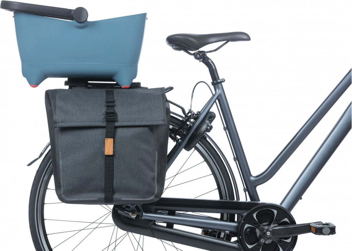 - Je monteert de MIK Double Decker gemakkelijk op de brug van een dubbele MIK fietstas met voorgemonteerde MIK-adapterplaat.