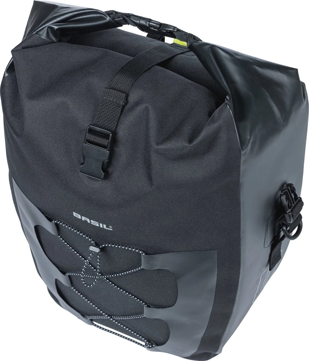 De Basil Navigator Waterproof L is een enkele fietstas voor achterop een dames- of herenfiets. De sportieve zwarte tas heeft een inhoud van 25 tot 31 liter.