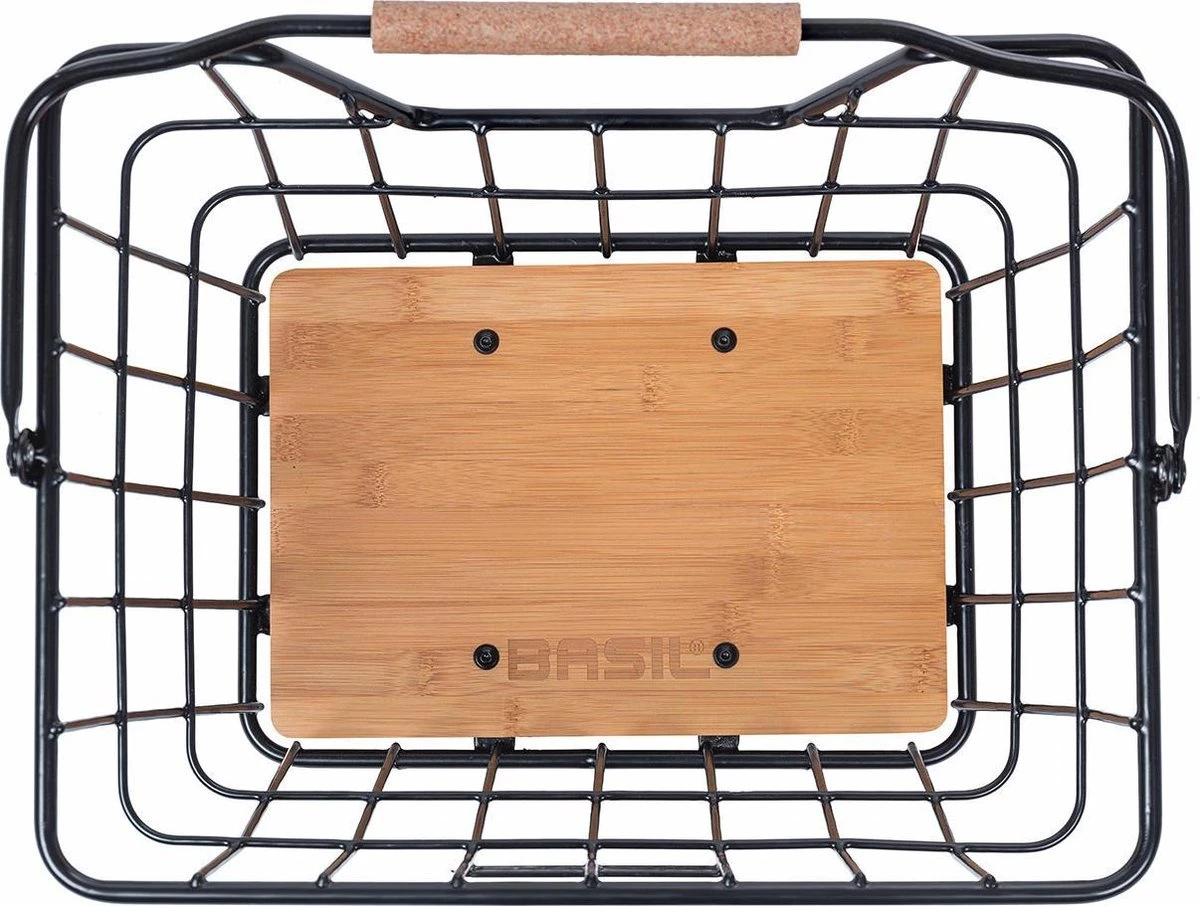 Ben je op zoek naar een moderne fietsmand? Dan is de Basil Nordland MIK fietsmand iets voor jou! De afneembare mand is gemaakt van een robuust staal in combinatie met een bamboe bodem. Met een inhoud van 23 liter is de mand ideaal voor het doen van je dagelijkse boodschappen. Zo komt de mand van pas bij je wekelijkse bezoek aan de markt. Daarnaast kun je er gemakkelijk je handtas in kwijt. Je bevestigt de mand eenvoudig dankzij de voorgemonteerde MIK-adapterplaat. Met deze adapterplaat klik je de mand eenvoudig in jouw bagagedrager of voordrager met MIK-profielen of een MIK-bagagedragerplaat. Wil je de mand meenemen de winkel in? Dan klik je de mand er net zo gemakkelijk weer af. De mand neem je comfortabel mee dankzij de handgreep. Deze handgreep is gemaakt van rubber en kurk. De MIK-adapterplaat past op veel bagagedragers, dames-, heren-, en de elektrische fiets. Eigenschappen: Moderne, afneembare fietsmand voor je dagelijkse boodschap. Geleverd inclusief voorgemonteerde MIK-adapterplaat, zodat de mand op bijna elke bagagedrager past en gemakkelijk afneembaar is. Gemaakt van robuust staal met een bamboe bodem. Eenvoudig te bevestigen op elke fiets, ook E-bikes!