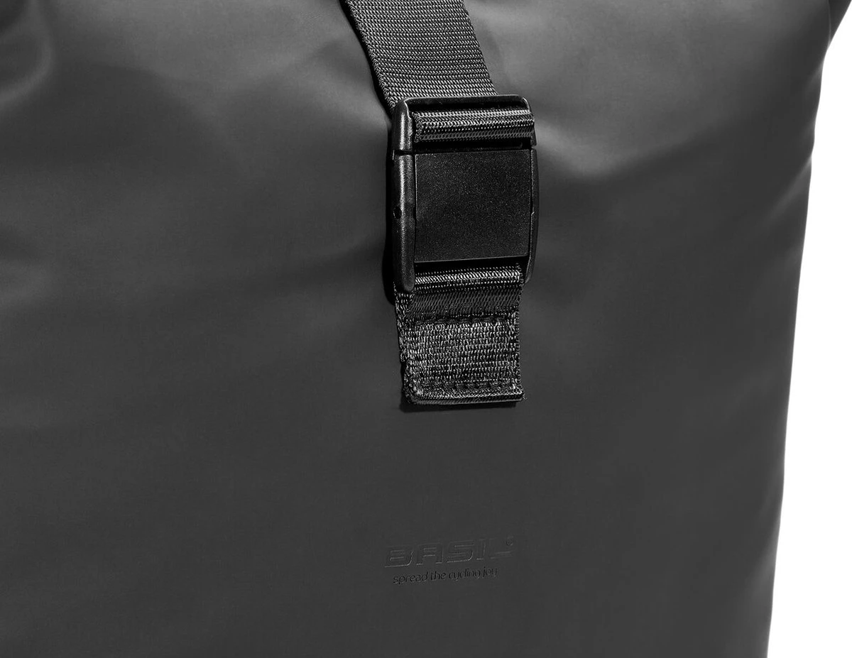 Ben je op zoek naar een ruime fietstas die er ook nog eens mooi uitziet? Dan is de Basil SoHo dubbele fietstas Nordlicht in de zwarte kleur echt iets voor jou. Gemaakt van mat PU-materiaal dat erg zacht aanvoelt* met een inhoud van 41 liter. De tas is waterdicht (IPX3), waardoor jij jouw spullen altijd droog meeneemt. De tas sluit je af met een roltop die je aan de zijkanten van de tas met drukknopen bevestigt. Aan jouw veiligheid is ook gedacht. De tas is namelijk voorzien van Nordlicht Technology**, een geïntegreerde LED-strip. Zo val je in het donker beter op. De LED-verlichting werkt op 3x AAA batterijen (apart verkrijgbaar). Heb je veel en zwaardere spullen in je tas? Dan kun je de tas combineren met de Basil Afstandhouder (apart verkrijgbaar). Deze houder voorkomt dat de tas in de spaken van je fiets komt. Je bevestigt de Basil SoHo dubbele fietstas eenvoudig op je bagagedrager met het Universal Bridge systeem. Dankzij het Universal Bridge systeem kun je kiezen uit hoe je de tas wilt bevestigen. Het bevestigen kan met de voorgemonteerde riempjes. Of in combinatie met het Basil DBS systeem (afneembare bagagedragerplaten) of een adapterplaat zoals MIK. Beide systemen dien je apart aan te schaffen. Eigenschappen: Waterdichte dubbele fietstas inclusief roltopsluiting. Voorzien van geïntegreerde LED-verlichting (batterijen apart verkrijgbaar). Ruime inhoud van 41 liter totaal. Gemakkelijk te bevestigen op (bijna) elke bagagedrager, dames-, herenfiets en elektrische fiets. *Schuren tegen wat ruwere oppervlakten kan ervoor zorgen dat het materiaal beschadigt. De tas blijft ook dan waterdicht met dezelfde hoge IPX3 norm. **Nordlicht Technology kun je gebruiken als een aanvullende verlichting en treedt op geen enkele wijze in de plaats van de wettelijk vereiste fietsverlichting. Voor het gebruik van alle verlichting dien je te allen tijde de wettelijke regels met betrekking tot fietsverlichting van het land op te volgen.