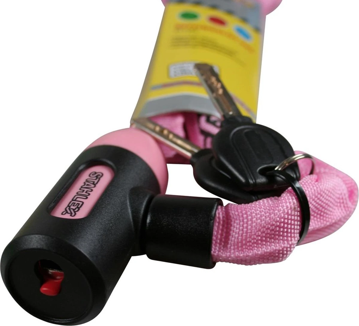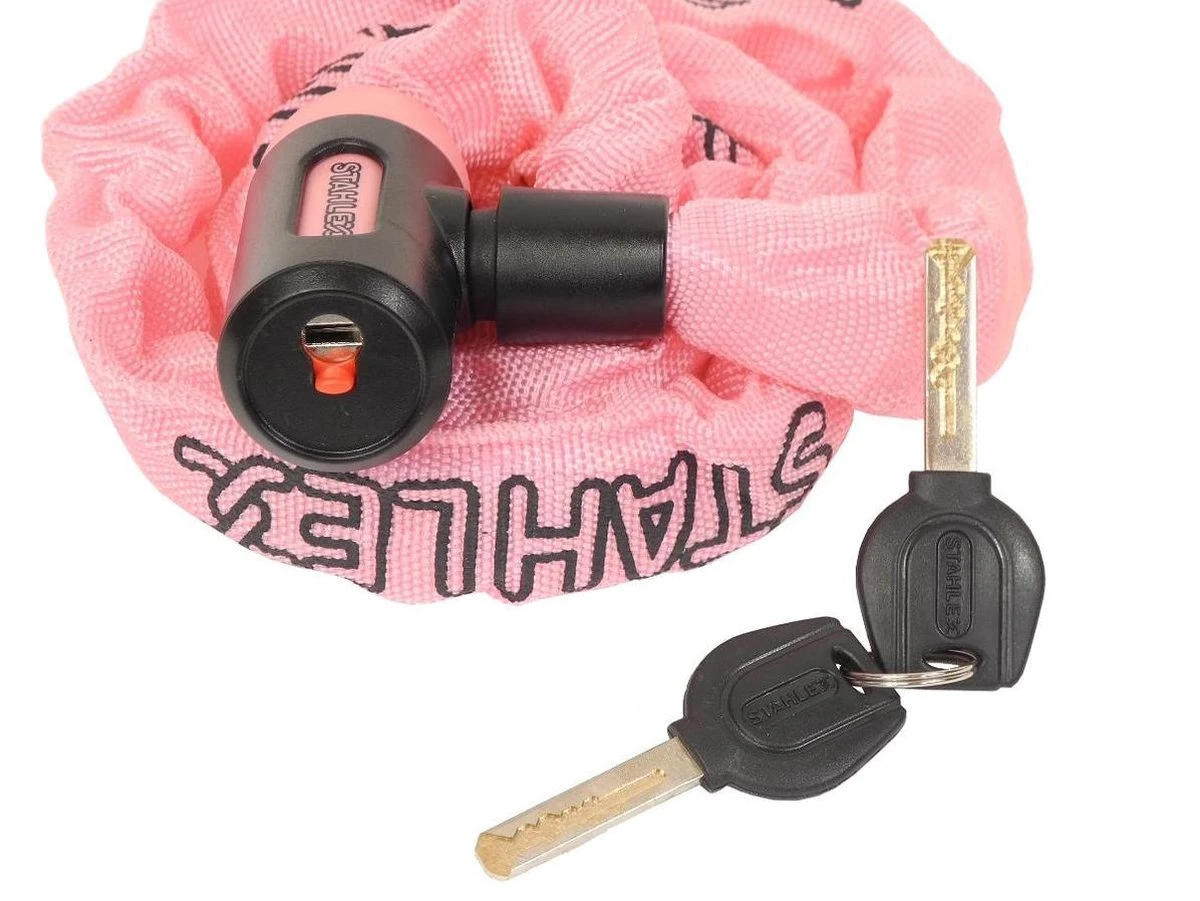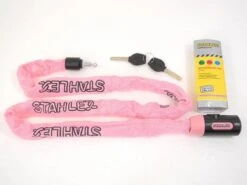 Met dit Stahlex kettingslot kun je je fiets met een gerust hart achterlaten. Het slot is gemaakt van gehard staal en voorzien van twee sleutels. De sterke, kettinghoes zorgt voor een goede bescherming en is weerbestendig. Ideaal om uw tweewieler veilig en gemakkelijk op slot te zetten. Sterke en stevige uitvoering. Goede kwaliteit. Als poort kettingslot of aanhangerslot ook bruikbaar. Geef dieven geen kans. Met behulp van de hoog gehard stalen ketting is je tweewieler extra beveiligd! Dit slot beschikt over een klepje over het slot heen, zo voorkomt u vuil in het slot en dat maakt het slot ook weerbestendig!