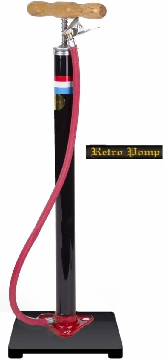 Voor je banden is het belangrijk om ze altijd op de juiste spanning te houden, en daarvoor kun je de Fietspomp prima gebruiken. Dit Hollandse model heeft een stalen pomp met een houten voet en handgreep.