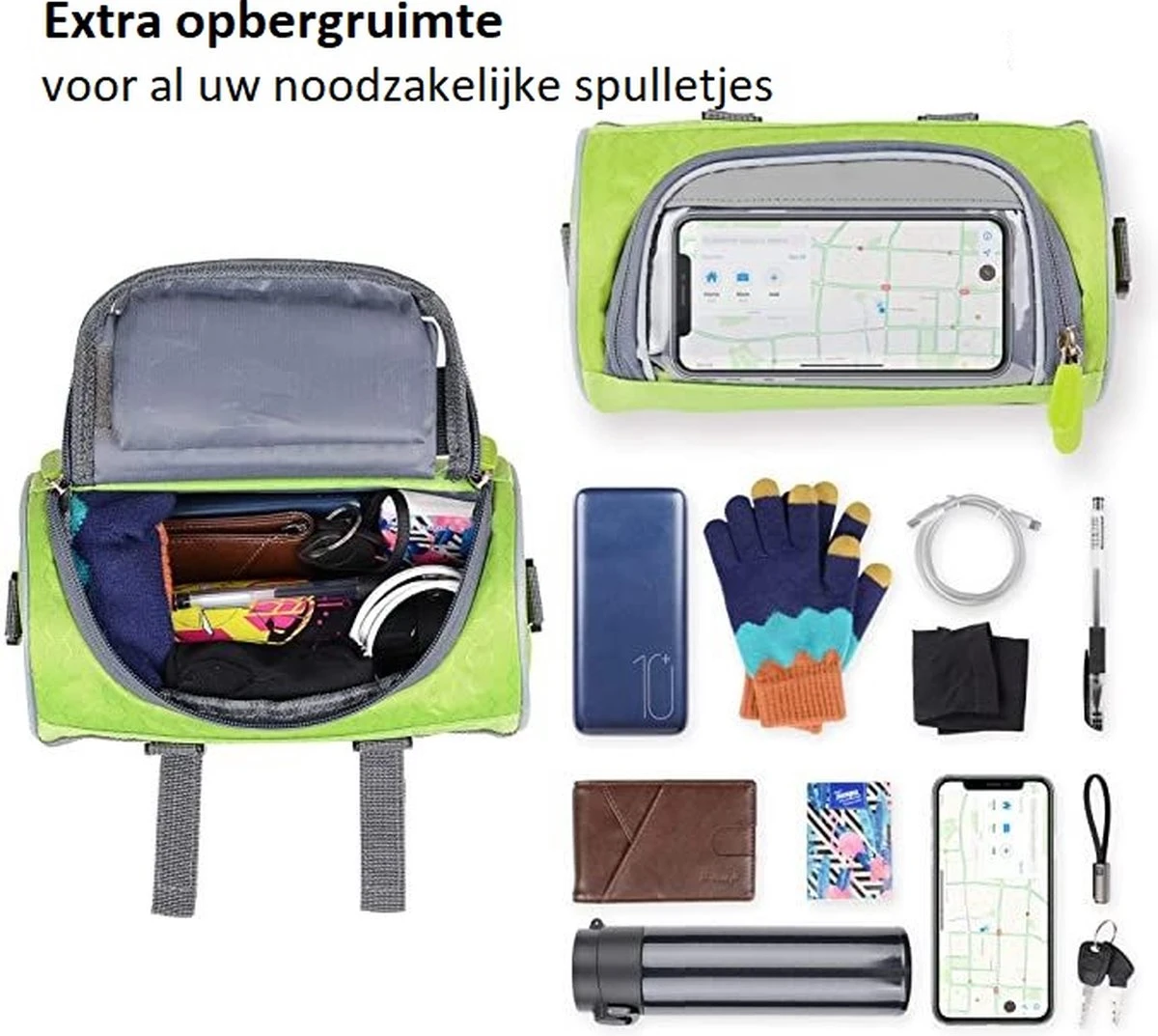 Handige compacte fietstas voor aan het stuur van uw fiets. Met klittenband aan de achterzijde gemakkelijk te bevestigen aan uw stuur en stuurpen. Het doorzichtige opbergvak aan de zijkant is handig om een telefoon of navigatie in op te bergen en u kunt zelfs uw touchscreen door het plastic heen blijven bedienen! Dankzij het waterafstotende polyester blijven uw spullen altijd droog. Wij leveren tevens een draagband mee zodat u het tasje ook als schoudertas kunt gebruiken. Bestel hem nu en kies voor de uitstekende kwaliteit en service van DICY!