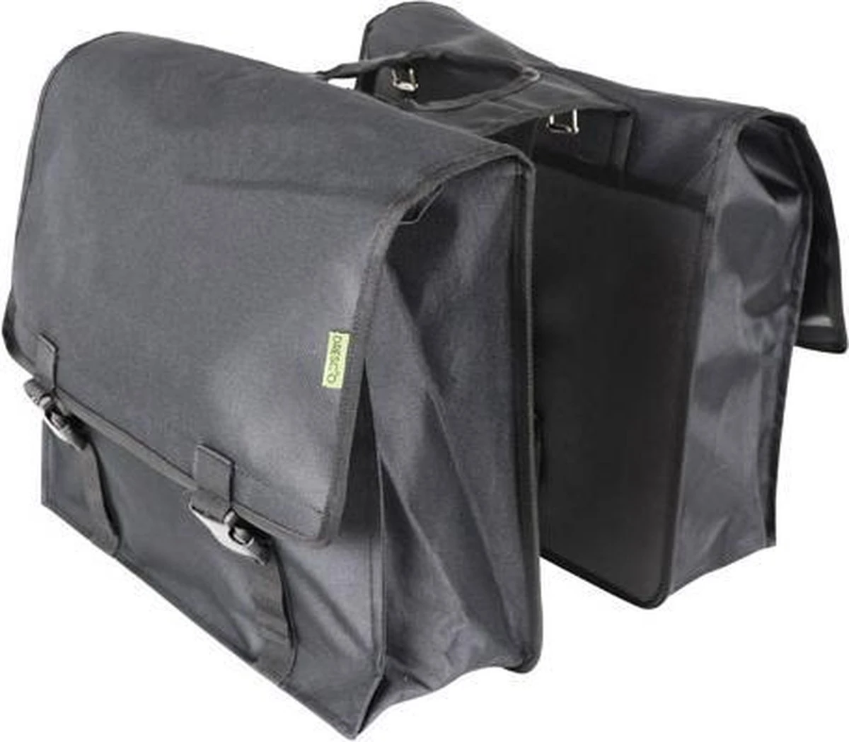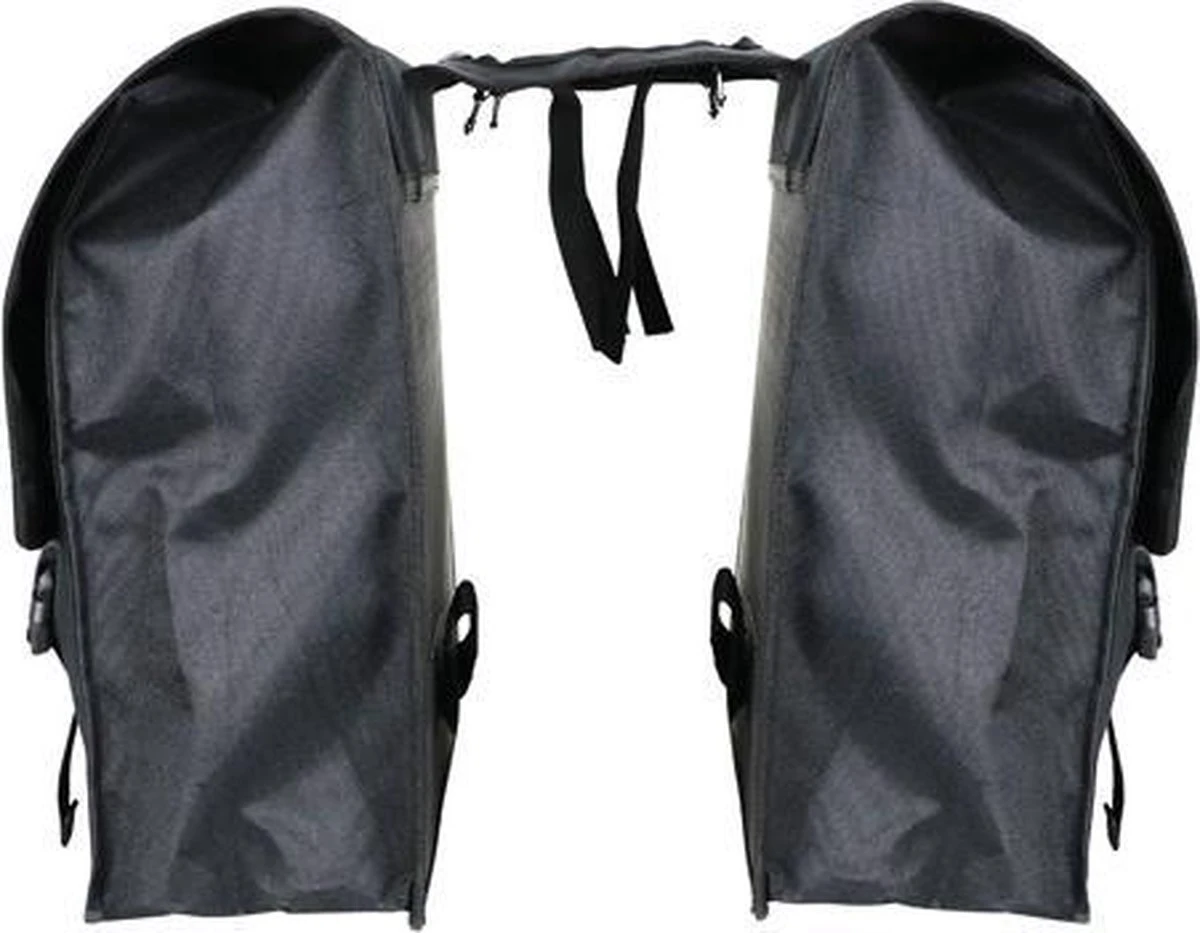 De Dresco dubbele fietstas Super Shopper is een handige ruime fietstas met een inhoud van 50 liter. De zwarte tas is gemaakt van waterafstotend nylon en heeft extra verstevigde rug en bodem. De Dresco tas is makkelijk aan de bagagedrager te bevestigen met de gespbevestiging.