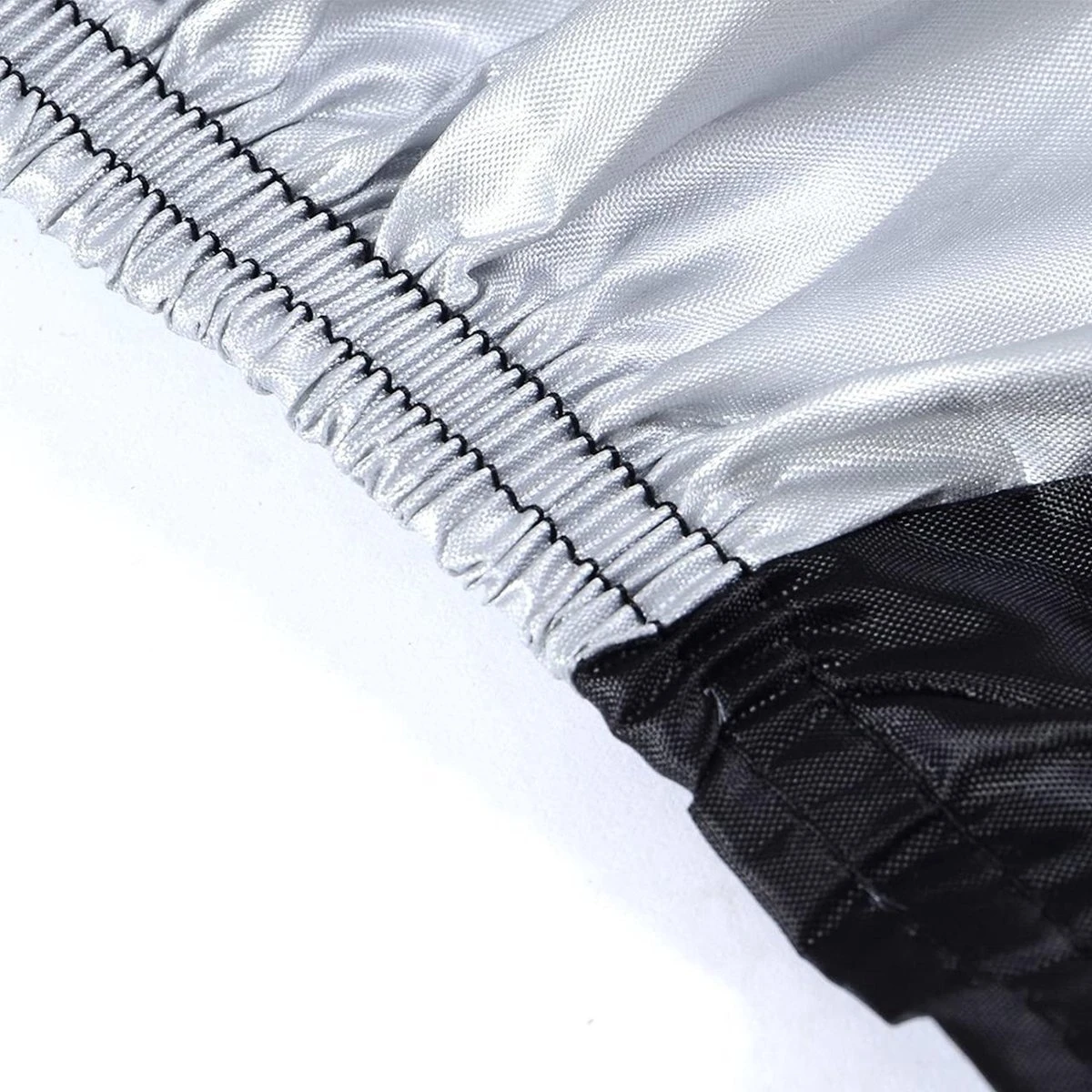 – 190T nylon materiaal + PU-coating, stevig, stoot water, regen en 40+ UV-bestendige bescherming van uw fiets tegen regen, sneeuw, stof, wind, zonschade.