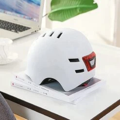 Fietshelm-Met Voor- En Achterlicht-Skatehelm -Maat-M-54 Tot 57cm-Helm Wit – LED Verlichting