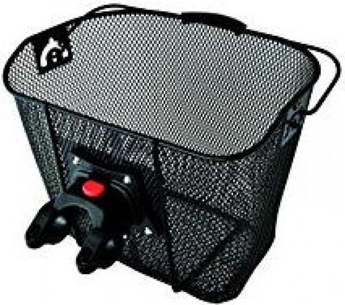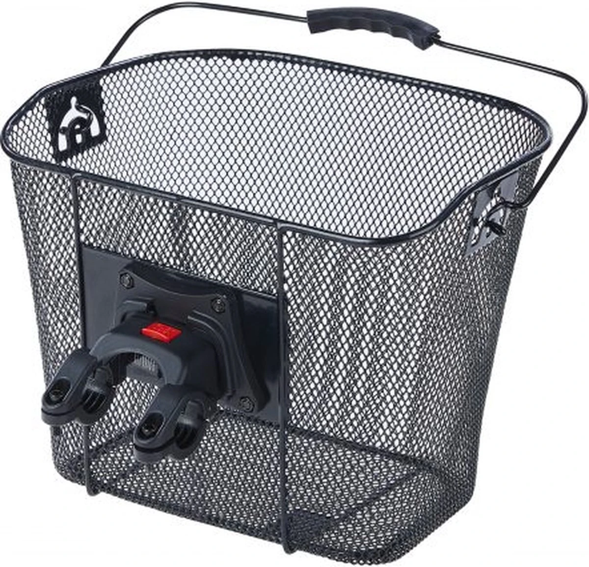 Fietsmand City Express Klick Pro met fijnmazig geplastificeerd staalraster. Uitgevoerd met handvat, snelbevestiging en ontgrendeling met klikbevestiging op het stuur.