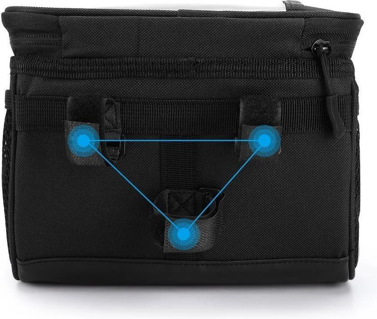 In deze stuurtas fiets kun je gemakkelijk veel spullen opbergen: sleutels, portemonnee, koptelefoon, handschoenen. Het heeft een hoofdvak met ritssluiting van 2 liter en een extra extern gaasvak.