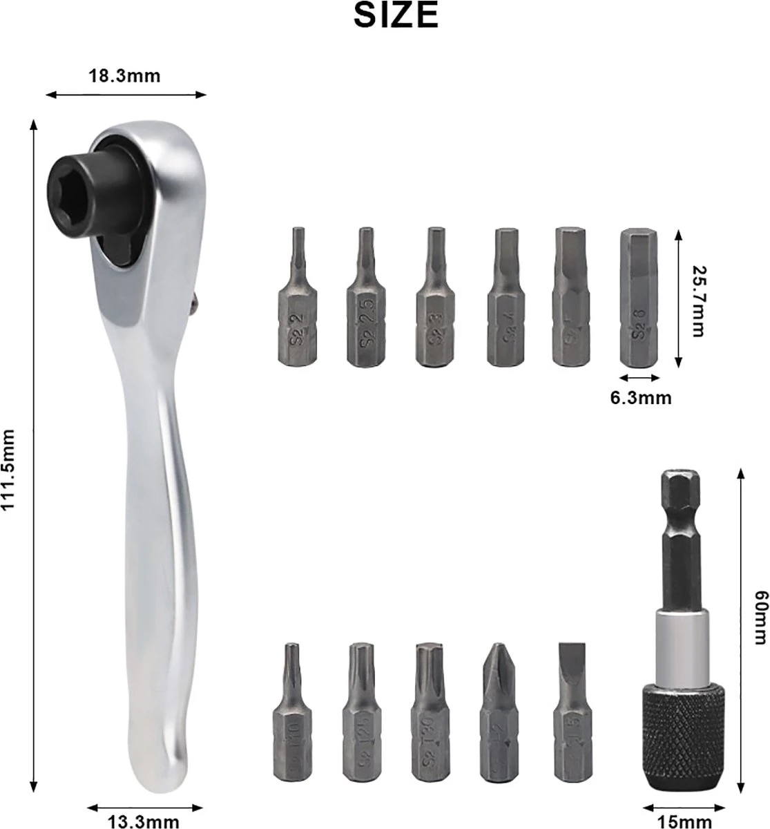 De inhoud is inclusief alle gangbare bits: hoogwaardige inbussleutels 2 / 2,5 / 3 / 4 / 5 / 6 mm en T10, T25 en T30. Solide materiaal topkwaliteit gereedschap. TorqueSet Momentsleutel Inbussleutel Set Inbussleutelset