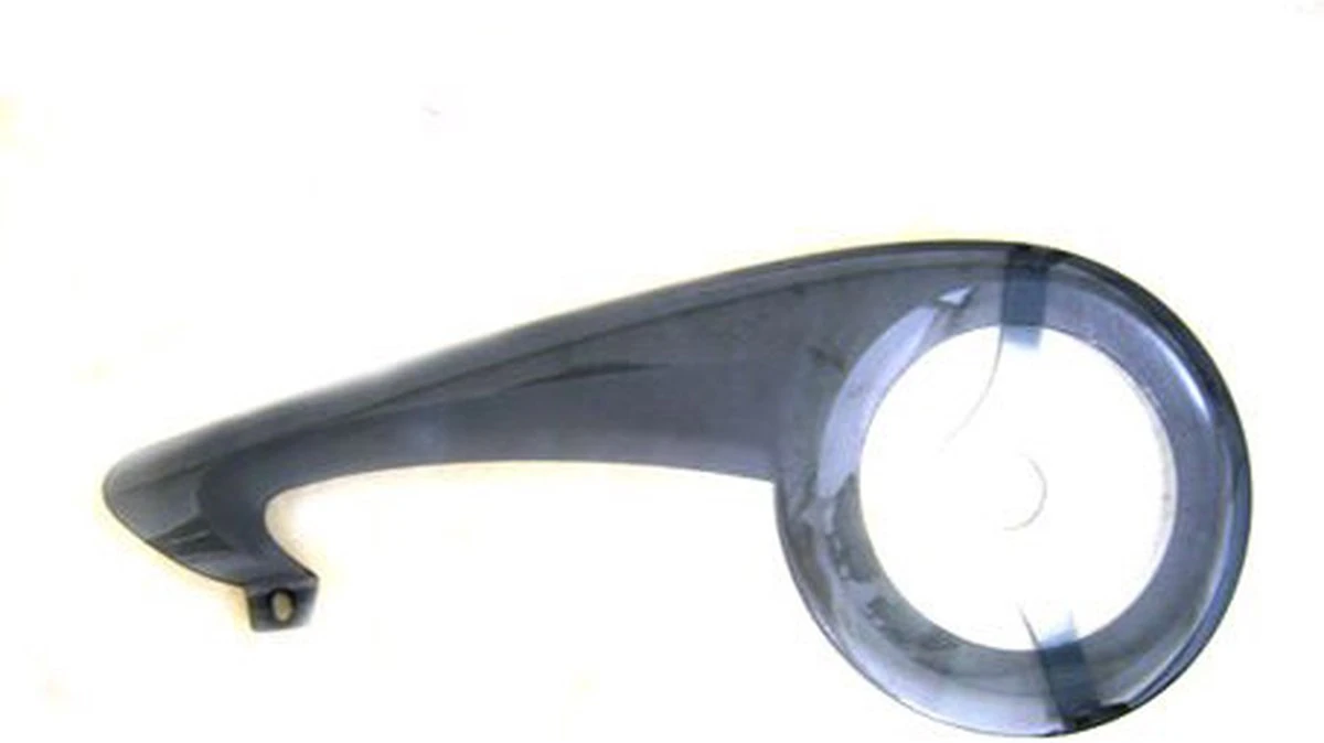 Hesling Flex kettingscherm voor 28″ fietsen Kleur: transparant Materiaal: kunststof Lengte: 50 cm Hoogte: 21 cm Diameter crankgat: 14 cm Wordt alleen geleverd met bracketbeugel.