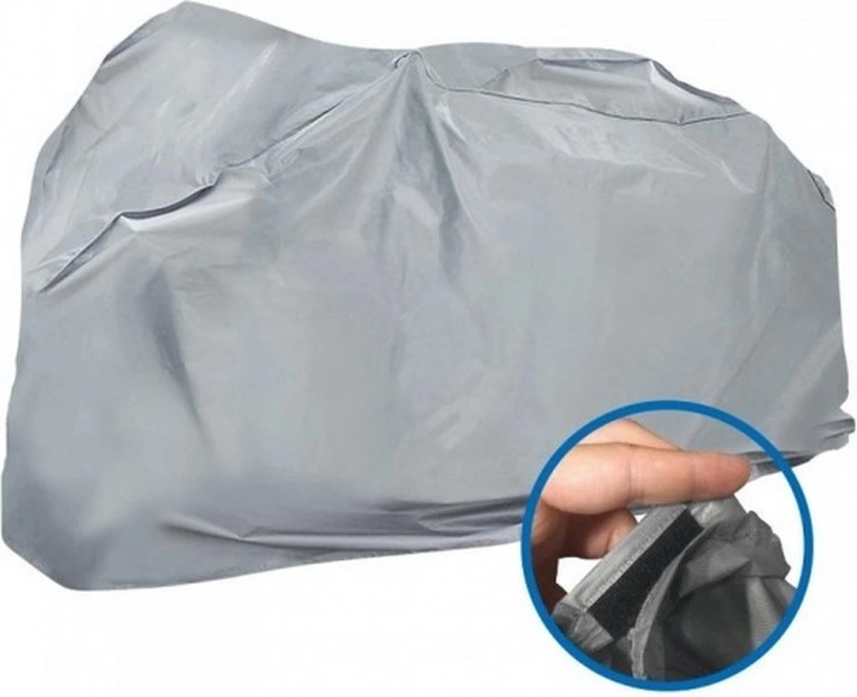 ProPlus fietshoes Deze fietshoes geeft in de winter bescherming tegen ijs, vuil en sneeuw en in de zomer tegen de hitte, stof en harsvlekken. De beschermhoes is geschikt voor één fiets en is uitgevoerd met klittenband aan de onderkant voor een optimale bevestiging en pasvorm. Specificaties: Kleur: grijs Materiaal: EVA Afmeting: 200 x 110 cm (L x B) De fietshoes is geschikt voor één fiets.