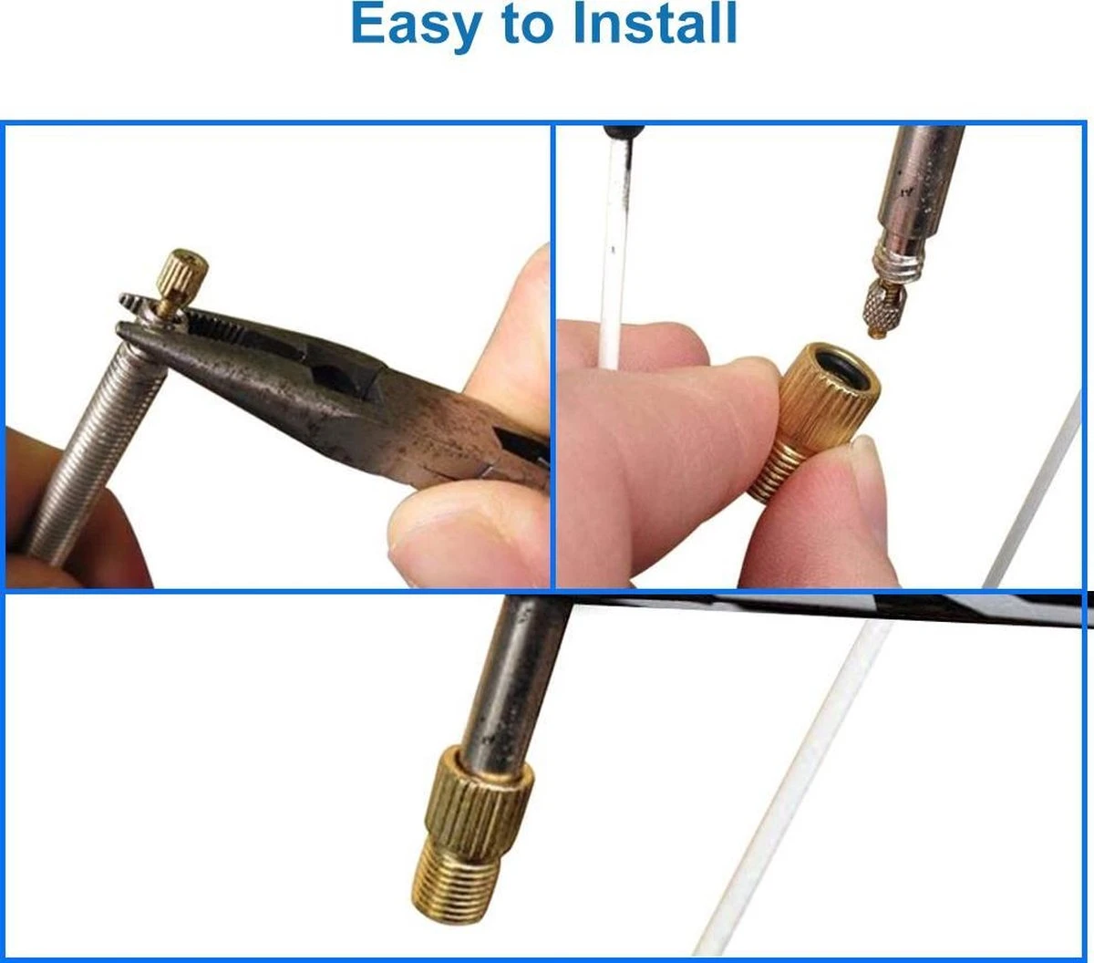 - Eenvoudig in gebruik: draai eenvoudig het dopje van het Presta ventiel van de band. draai het ventielpunt van het Presta ventiel open, en draai de adapter op het Presta ventiel. Nu is de band klaar om opgepompt te worden.