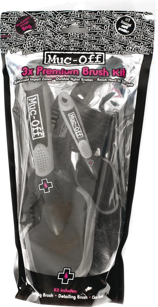 De Muc-Off 3-Brush set is ideaal om het frame en onderdelen schoon te maken