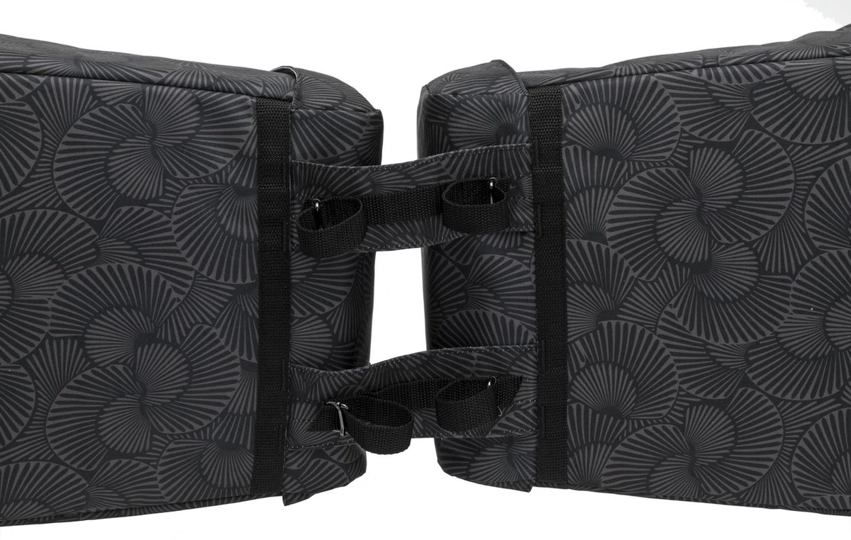 De fietstas wordt aan de bagagedrager bevestigd met riempjes. Dat maakt deze tas geschikt voor vrijwel alle fietsen, ook elektrische. De brug tussen de twee delen van de tas is 18 cm. Je kunt de fietstas extra vastzetten aan de zijkant van de bagagedrager met een klittenband riempje. Je zet de tas 1 keer vast en daarna zit deze goed bevestigd op de drager.