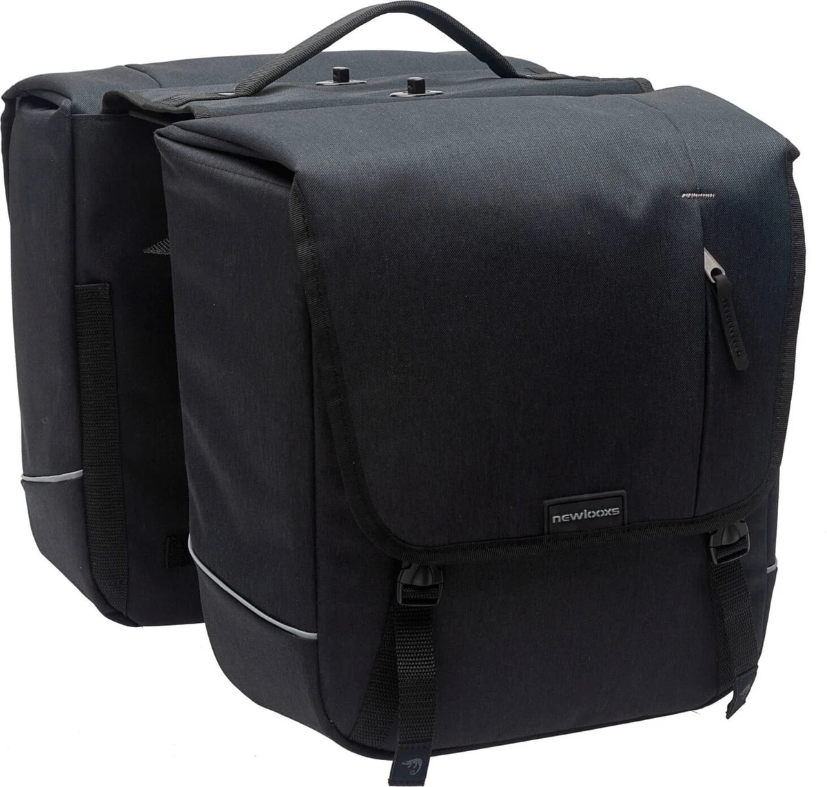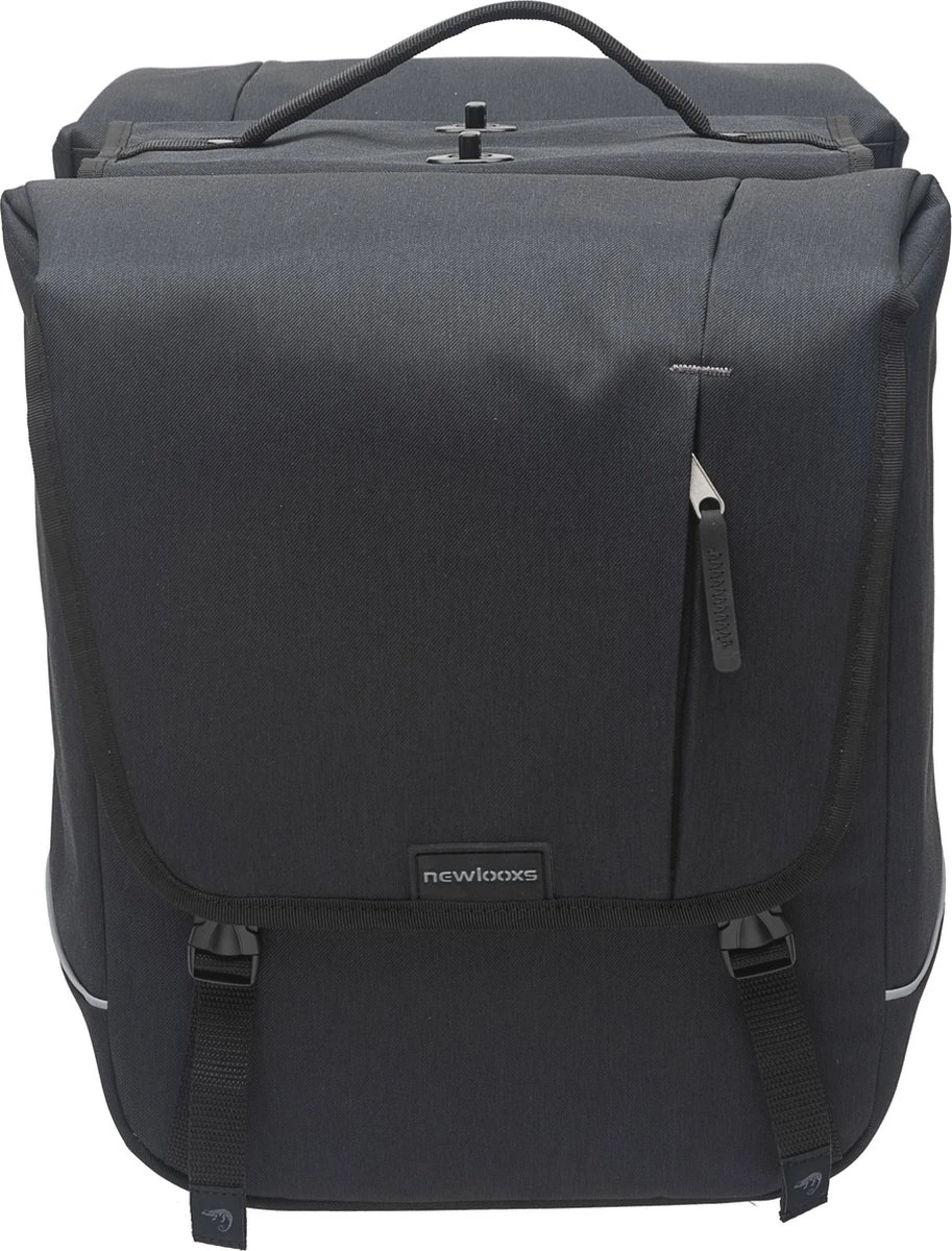 De Nova Double is gemaakt van waterdicht polyester. Door de speciale vorm van de klep is de tas goed waterafstotend tegen kleine regenbuien. Wil je ook de zwaardere regenbuien doorstaan? Dan raden wij aan om een New Looxs regenhoes voor dubbele fietstassen erbij te kopen. Daarmee maak je iedere tas waterdicht.
