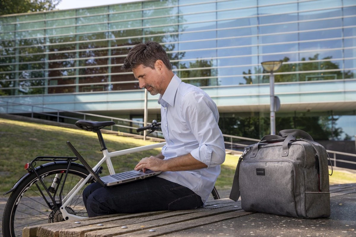 Wil jij jouw laptop of tablet meenemen op de fiets? Deze schoudertas is eenvoudig op de fiets te monteren en weer mee te nemen.