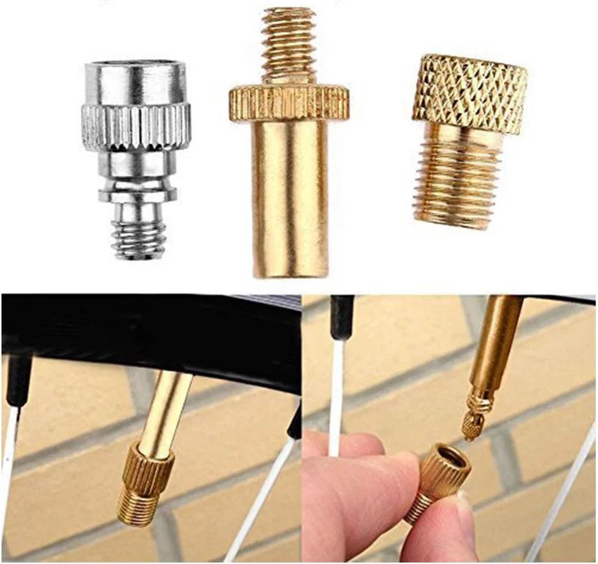 | Verpakkingsinhoud | Set van 3 verloopnippels voor Frans/Presta en Hollands/Dunlop en autoventiel |