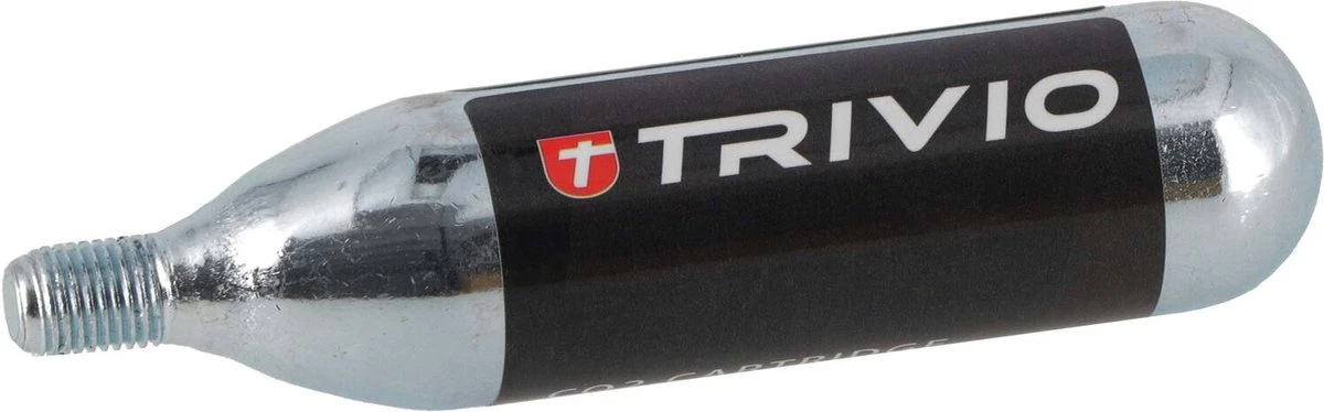 Trivio CO2 patronen helpen u steeds uit de nood! Ze zijn voorzien van universele schroefdraad zodat elke ventieladapter kan bevestigd worden. Met een gewicht van 16 gram bieden deze patronen voldoende druk om een racefietsband hard te zetten. Pomp uw fietsband snel en zorgeloos op met deze CO2 patronen van Trivio. Geniet van een zorgeloze rit met Trivio.
