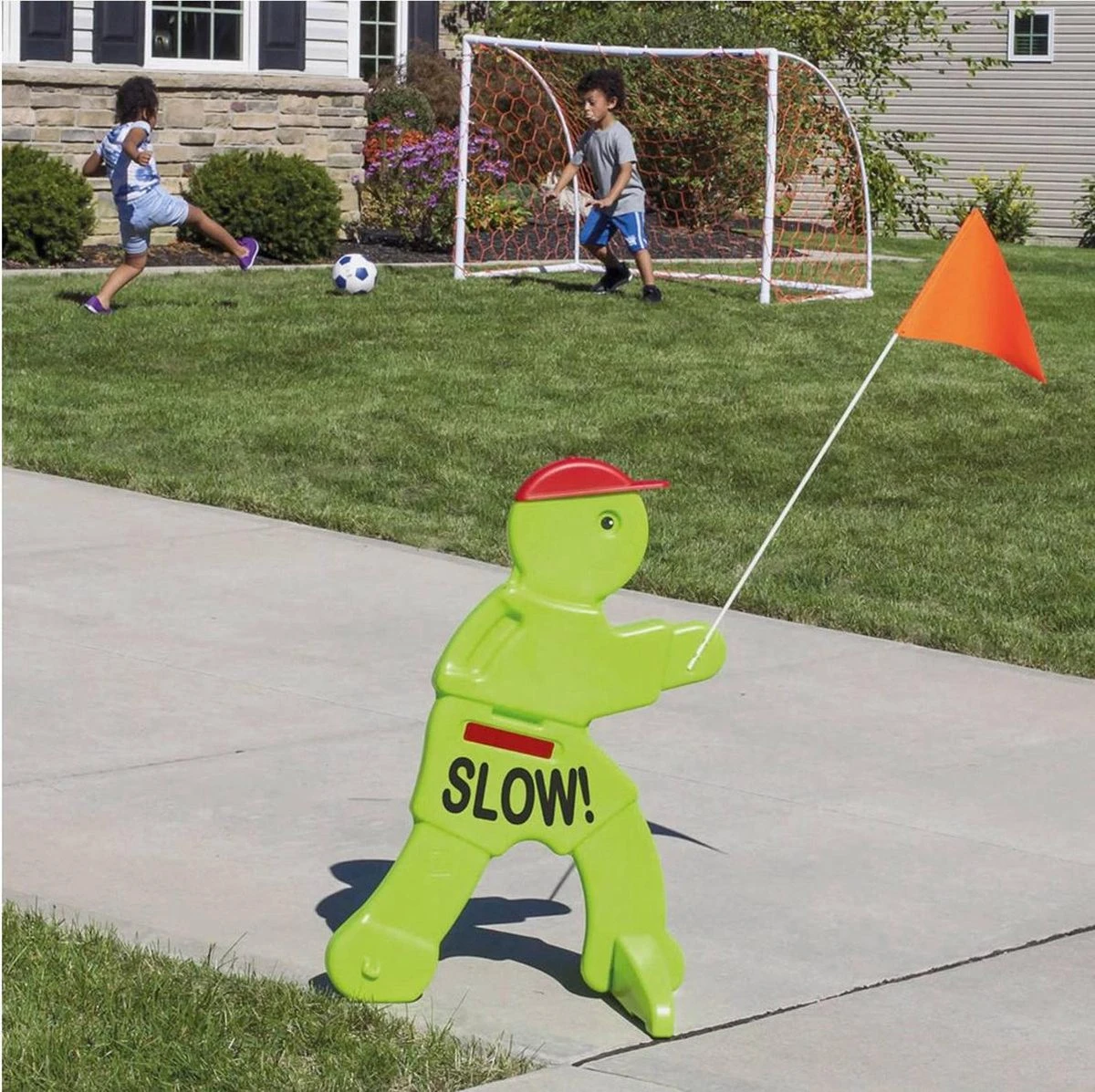 Zet Victor Veilig altijd buiten als kinderen in de wijk gaan spelen; dankzij het lichte gewicht en de handvat is deze eenvoudig overal te plaatsen.