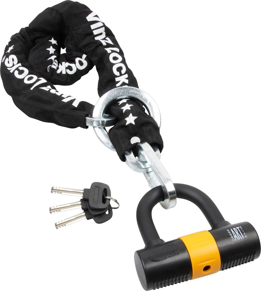 De Trivor sloten van VINZ zijn uitstekend te gebruiken voor het beveiligen van je motor of scooter tegen diefstal. De sloten hebben het keurmerk ART 4 en zijn daarmee geschikt voor bijna alle diefstalverzekeringen. Bekijk wel altijd goed de specifieke voorwaarden van de verzekeraar. De sloten zijn gemaakt van gehard staal en hebben een afsluitbaar sleutelgat. Dit voorkomt ophoping van vuil en water, waardoor het VINZ slot een langere levensduur heeft. Het kettingslot van VINZ is tevens te gebruiken als bootslot.