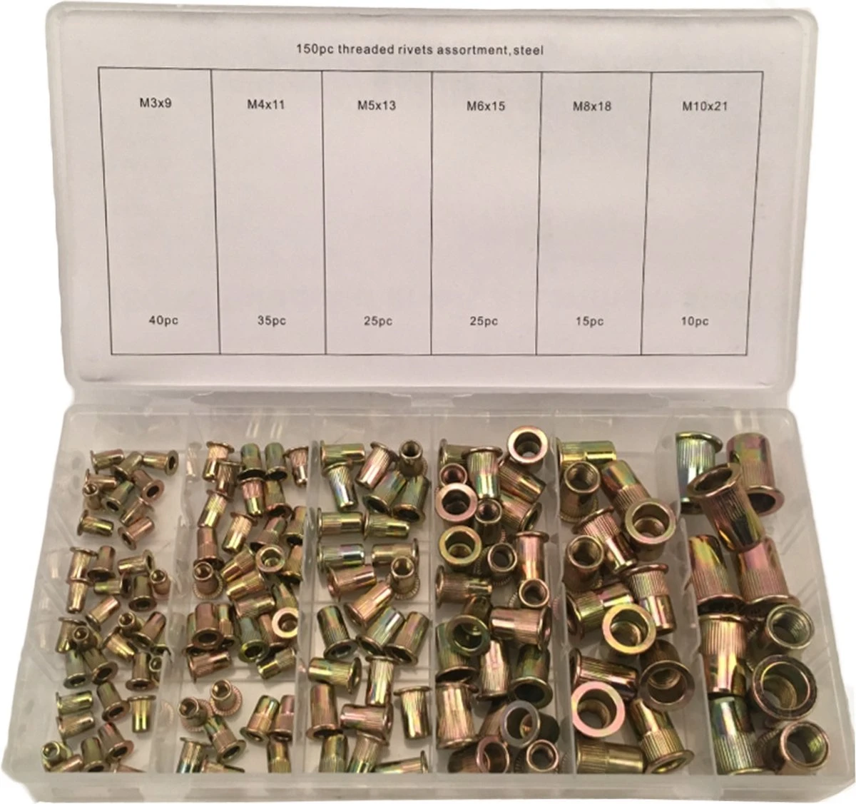 Weber Tools professionele stalen blindklinkmoeren assortiment. 150 delig in handige opbergdoos