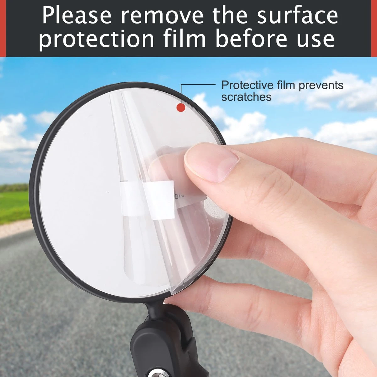 EENVOUDIG TE INSTALLEREN – Gebruik een 5 mm inbussleutel om de schroef aan het fietsstuur te bevestigen en draai deze vervolgens vast om een stevige sluiting te garanderen. (Opmerking: de antikrasbeschermfolie voorkomt dat de lens tijdens het transport wordt bekrast. Verwijder voor gebruik de oppervlaktebeschermende film.)
