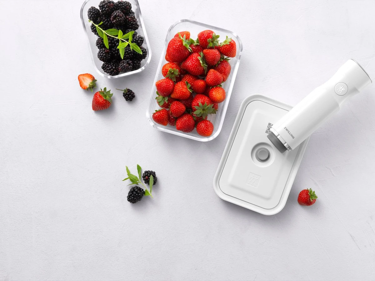 Salades, soepen en visfilets worden geurloos en luchtdicht bewaard en smaken net zo vers als op de dag dat ze werden bereid. Dankzij de lekvrije afsluiting van het deksel kunt u de maaltijden ook overal mee naartoe nemen. Plotse wijziging in uw weekplanning? Geen probleem! Alle potten zijn diepvriesbestendig. Nog een voordeel: bij gevacumeerd voedsel is het risico op vriesbrand zo goed als onbestaande! U kunt de bereide maaltijden dus gewoon in de vacuümpot in de diepvries bewaren! Met de ZWILLING Culinary World App hebt u bovendien altijd alles onder controle: u scant de QR-code op het deksel van de pot en krijgt een herinnering wanneer het tijd is om uw maaltijd op te eten. Stuurde de app u een herinnering? Warm uw pot dan bij de volgende gelegenheid met het deksel in de microgolfoven op en geniet van een maaltijd die even vers is als op de dag dat hij werd bereid.